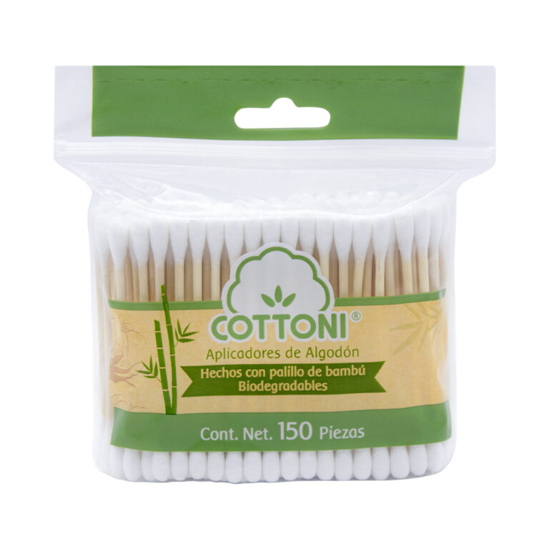 Los aplicadores biodegradables de algodón Cottoni® están elaborados con algodón y bambú 100% natural.